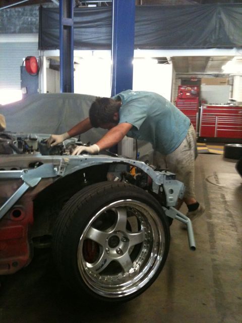This longwinded story brings me to today. I’m at the shop watching Bryan and Bruiser work on their cars. My friends and family probably wonder what I get out of spending my day off at the shop but it is honestly the only full day I get to spend with Bryan. My schedule is so sporadic at work that it prevents us from spending a lot of time together even though we live together. I can’t change the fact that Bryan has to get work done and I can’t change my work schedule so I just try to make the best of it. Even though I’m bored and feel pretty useless when he tries to run his fabrication ideas by me, I come to support him through my presence and chat with him when he has a chance. He tries to include me and I appreciate that. He takes me to get bagels beforehand which makes me happy. All in all it’s a good day when we spend it together.