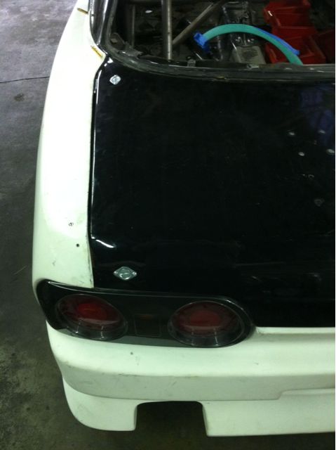 After work I finished up the trunk mount dzus fasteners so the trunk is completely mounted now. I cut all the inner skeleton out and it drastically reduced the weight of the insanely heavy stock trunk. I am thinking about using it to mold a fiberglass trunk lid but I’m afraid that it won’t be strong enough for the wing so I’m going to wait. Then I started working on the tailights mounts so I can hopefully finish up the rear end this weekend. I have a lot more fiberglass fitment to do before everything is perfect but it’s getting there.