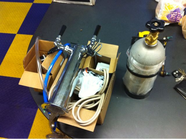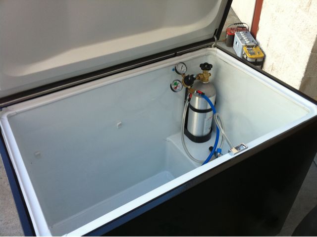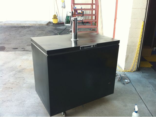 Well I got this wild hair to build a kegerator setup. Mainly to cut down on the bottles around the house. Since my roomate, Bruiser, and I all drink beer the bottles can stack up pretty quickly and since we recycle they always end up in bags waiting to be recycled for a while. In order to streamline the process I wanted to eliminate the bottles. Well I ran around on Saturday collecting parts and a used freezer so I could make the kegerator happen. I decided I wanted a 2 tower system so I can run 2 kegs at once and in order to accommodate 2 kegs I needed a pretty big fridge so I decided on a 15 cu. Ft. chest freezer and running it on an external thermostat. For the freezer I just picked up the cheapest thing I could find on craigslist. It was a terrible off white and it smelled a little questionable. I sanded it down and hut it with some black appliance paint then I cleaned it really well with some simple green and it’s good as new. Cut a whole in the top and ran the beer lines through. Mounted the tower and the co2 tank. Then hooked up the taps and mounted the thermostat and it’s all ready to go. Ordered a keg of my favorite seasonal beer from Kona brewing company and now I’m just waiting for the keg to get here.