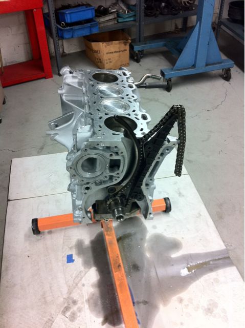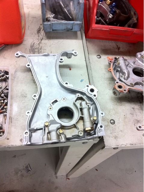 Not too many updates today. I finished up my pickup tube. Had to make a custom pickup tube because the ve front cover has a bigger pickup tube and different flange. Then I assembled the short block a little more till I ran out of parts. Cleaned up all of the mating surfaces from all the old