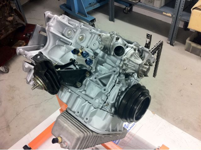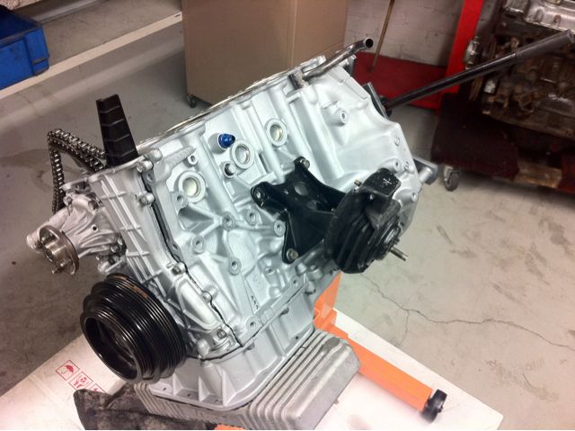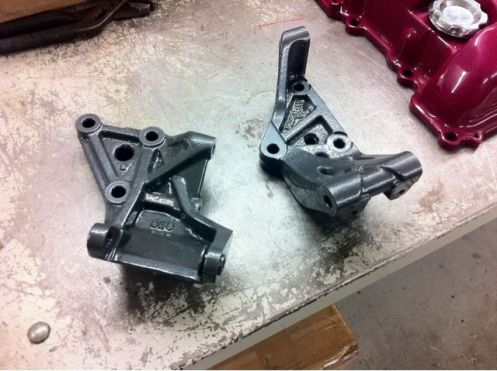 Been working a little bit everyday after work because I don’t have much to do on the engine till I get the head back from port flow. I won’t be running a heater core obviously and I don’t want to deal with a bunch of extra hoses and lines so I got a plug machined for the engine block side and welded on a -4 an fitting to the thermostat housing in case I need a coolant line for anything later like AST or whatever and it will be easy and maintenance free to throw a cap on it till I need it. Got some engine brackets back from powder coat and I painted the valve cover after I welded -8 an fittings to the creatures because I had problems before with the stock pressed in piece falling out and puking oil all over. Also put the engine mounts on and some other random fittings and plugs.
