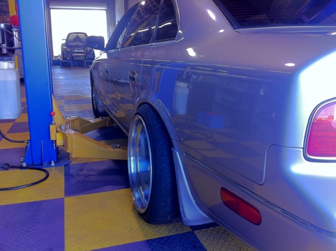 Spent the weekend working on the Q45. The Coilovers are custom so I am still dialing them in perfectly but they are getting there I need to make shorter cases for the rear so I can drop the car more since now that I’ve pulled the camber out of the back it’s a lot higher then I want and since I’m rocking 18’s it needs to be pretty low to look good. So I installed all the arms, ruca, toe, traction in the rear and front upper, tension rods and tie rods. Did a quick eyeball alignment since I ran out of time. Also got a chance to test fit my rear wheels I had to pull the rear quite a bit but got them fitting with pretty low camber. Now I know I can fit the rears I can order fronts and pull the other side to match. I’ll clean everything up and do the boy work when I get ready for paint. Looking for aero now π