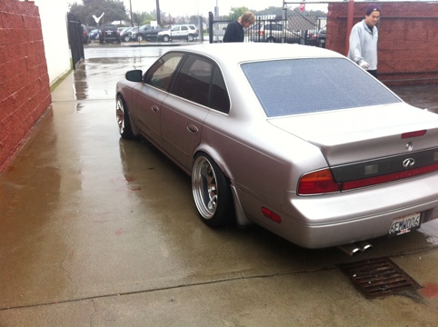 Got a chance to pull my fenders and put my rear s1’s on. I’m still waiting for my fronts they were special ordered from Japan so they are probably still another 2 months away at least. Rear fenders had to be pulled quite a but so I’ll Reshape them a little and some smoothing then I’ll have to repaint so it will probably be a while till they are 100% finished. Fronts are same size as my ordered wheels 18×9.5 +8 and the rears are 18×10 -8 with 225/40-18 front and 235/40-18 rear. Probably go to 225/45 in the front when I order tires though since I think the front tires look a little small.