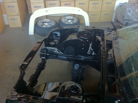 Busted out and got the engine bay and valve covers painted so I can final fit the motor and start assembling and wiring.