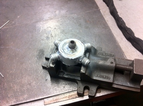 Welded up more tanks for the s13 the overflow tank with drain and sight on the side. Also made a 4 to 1 adapter for the PCV system since the stock vh45 valve covers have 2 PCV attachments on each side. The stock hoses and covers are a mess so I have simplified everything as much as possible to clean it up.